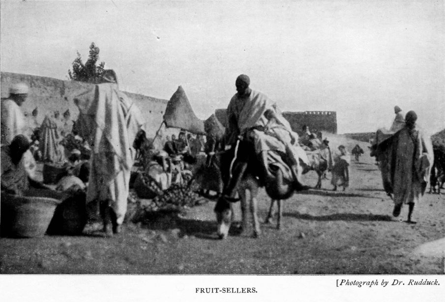 "As for Europeans, they have been rambling all over the country with their wonted freedom from interference. A Frenchman, travelling almost alone, has just returned from Imintanoot. Another has twice crossed the Atlas. Needless to say the route to Marrákesh is almost as devoid of other than pleasurable novelty as a stroll on the Embankment or down the shady side of Pall Mall. When, indeed, will folks at home grasp the fact that the Berber clans of southern Morocco belong to a race differing utterly in character and largely in customs from the ruffians infesting the northern half of the sultanate?