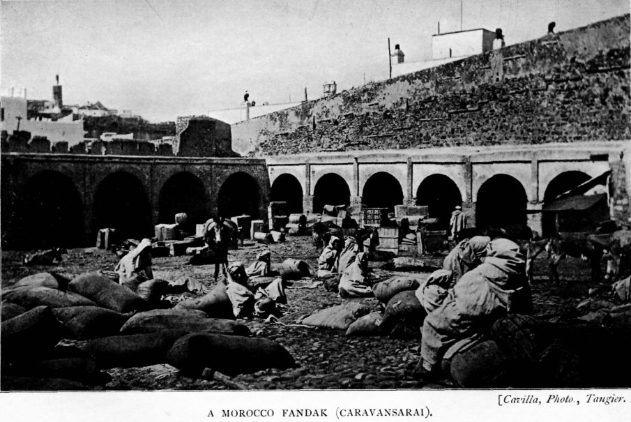 Notwithstanding the disturbed condition of much of the country, nothing has occurred to interfere with the pleasure certain to be afforded by a visit to Morocco at any time, and all who can do so are strongly recommended to include it in an early holiday. The best months are from September to May, though the heat on the coast is never too great for an enjoyable trip. The simplest way of accomplishing this is by one of Messrs. Forwood's regular steamers from London, calling at most of the Morocco ports and returning by the Canaries, the tour occupying about a month, though it may be broken and resumed at any point. Tangier may be reached direct from Liverpool by the Papayanni Line, or indirectly viâ Gibraltar, subsequent movements being decided by weather and local sailings. British consular officials, missionaries, and merchants will be found at the various ports, who always welcome considerate strangers.