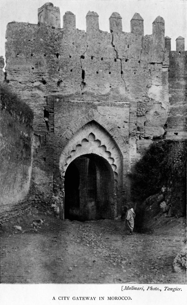 Previously Spain and Portugal had held the principal Moroccan seaports, the twin towns of Rabat and Salli alone remaining always Moorish, but these two in their turn set up a sort of independent republic, nourished from the Berber tribes in the mountains to the south of them. No Europeans live in Salli yet, for here the old fanaticism slumbers still. So long as a port remained in foreign hands it was completely cut off from the surrounding country, and played no part in Moorish history, save as a base for periodical incursions. One by one most of them fell again into the hands of their rightful owners, till they had recovered all their Atlantic sea-board. On the Mediterranean, Ceuta, which had belonged to Portugal, came under[page 12] the rule of Spain when those countries were united, and the Spaniards hold it still, as they do less important positions further east.