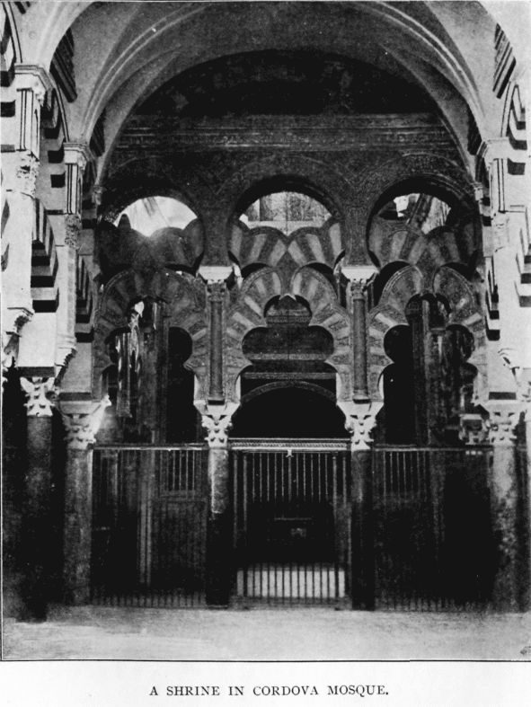 History has it that internal dissensions at the Court of Spain led to the Moors being actually invited over; but that inducement was hardly needed. Here was a country of infidels yet to be conquered; here was indeed a land of promise. Soon the Berbers swarmed across, and in spite of reverses, carried all before them. Spain was then almost as much divided into petty states as their land had been till the Arabs taught them better, and little by little they made their way in a country destined to be theirs for five hundred years. Córdova, Sevílle, Granáda, each in turn became their capital, and rivalled Fez across the sea.