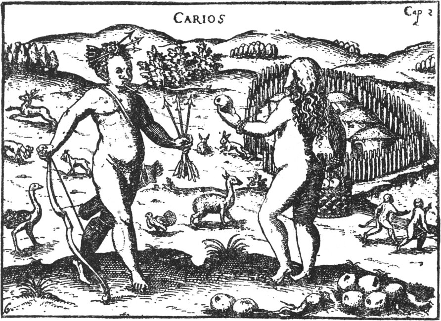 Nachdem so Mendoza die Streitkräfte für sein Unternehmen in Cadix gesammelt, fuhr die Flotte am 24. August 1535 von Sevilla ab, mußte aber noch einen achttägigen, durch ungünstigen Wind veranlaßten Aufenthalt in San Lucar de Barrameda nehmen. Auf den Kanarischen Inseln blieben sie ebenfalls vier Wochen; eine Liebesgeschichte brachte hier das deutsche Schiff und den Heinrich Paimen in Gefahr; Don Jorge Mendoza, ein Vetter des Oberbefehlshabers, der sich an Bord desselben befand, entführte nächtlich ein Mädchen und die Kanarier beschossen darauf das Schiff mit Kanonen; nur dadurch, daß der Entführer das Mädchen für [28]seine legitime Frau erklärte und zurückbleiben mußte, wurde die Sache beigelegt; »nach dem ließen wir Don Jorge Mendoza und seine Hausfrau an Land, denn unser Hauptmann wollt ihn nit an seinem Schiff mehr haben.« Endlich geht es weiter zu den Capverdischen Inseln, zur Insel Fernando Noronha und nach Rio de Janeiro; hier ernennt der Oberbefehlshaber den Juan de Osorno, seinen »geschworenen Bruder«, zum Maestro de Campo, da er selbst »allzeit contract, schwach und krank war«, läßt ihn aber auf falsche Anschuldigung hin bald darauf töten.