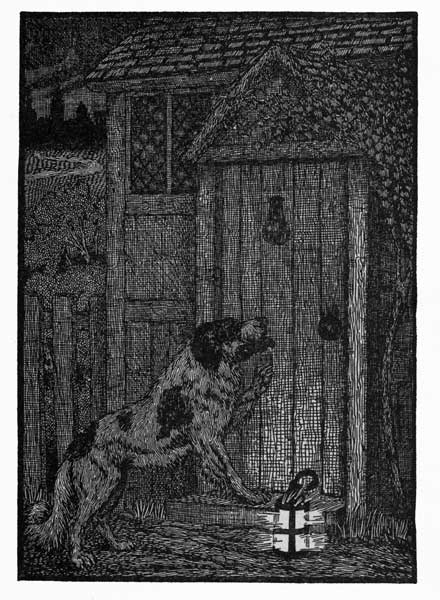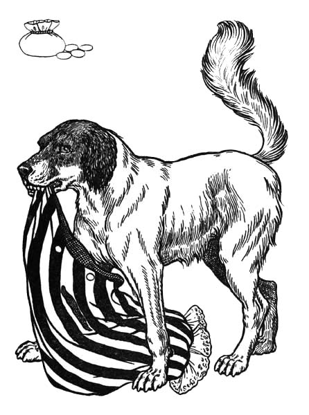 A thief who had broken into the shop of Cellini, the artist, and was breaking open the caskets in order to get at some jewels, was arrested in his progress by a dog, against whom he found it a difficult matter to defend himself with a sword. The faithful animal ran to the room where the journeymen slept, but as they did not seem to hear him barking, he drew away the bed-clothes, and pulling them alternately by the arms, forcibly woke them; then barking very loud, he showed the way to the thief, and went on before; but the men would not follow him, and at last they locked their door. The dog, having lost all hopes of the assistance of these men, undertook the task alone, and ran downstairs. He could not find the villain in the shop, but instantly rushing into the street came up with him, and tearing off his cloak, would have treated him according to his deserts if the fellow had not called to some tailors in the neighborhood, and begged them to help him. They came to his aid, and drove the poor animal away.[Pg 91]
