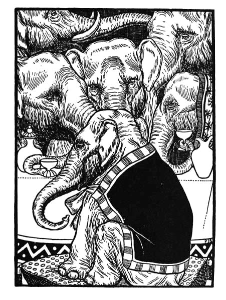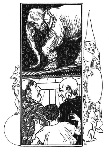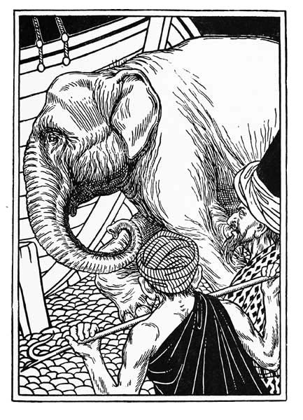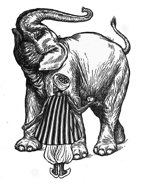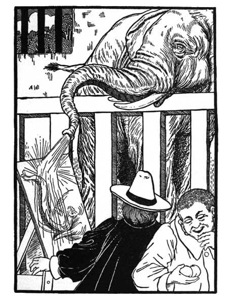 To make the elephant keep this position, an attendant threw fruit and nuts into the open mouth, but sometimes he only pretended to throw them. This made the animal very angry, and as if knowing that the painter rather than his servant was the one to blame, he finally turned to him and dashed a quantity of water from his trunk over the paper on which the painter was sketching his portrait.[Pg 105]
