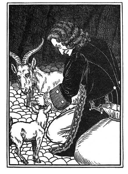 A gentleman who had taken an active part in the rebellion of 1715, after the battle of Preston escaped into the West Highlands, where a lady, a near relative, gave him a hiding-place. A faithful servant conducted him to the mouth of a cave and gave him an abundant store of food. The fugitive crept in at a low opening, dragging his stores along. When he reached a wider and higher place, he found some obstacle before him. He drew his dirk, but unwilling to strike, lest he might take the life of a companion in hiding, he stooped down, and found a goat with her kid stretched on the ground. He soon saw that the animal was in great pain, and feeling her body and limbs, found that her leg was broken. He bound it up with his garter, and offered her a share of the bread beside him; but she put out her tongue, as if to tell him that her mouth was parched with thirst. He gave her water, which she drank readily, and then ate some bread. After midnight he ventured out of the cave. All was still. He plucked an armful of grass and cut some tender twigs, which the goat accepted with signs of great joy and thankfulness. The prisoner took a great deal of comfort in having a living creature in his dungeon, and he caressed and fed her tenderly. The man who was trusted[Pg 93] to bring him supplies fell sick; and when another tried to enter the cavern, the goat furiously opposed him, presenting her horns in all directions, till the fugitive, hearing a disturbance, came forward. The new attendant gave the watchword, and so the prisoner knew he was all right. He spoke to the goat, and she obeyed him, and allowed the servant to enter. The gentleman was sure that had a band of soldiers attacked the cavern, his grateful patient would have died in his defense.[Pg 94]