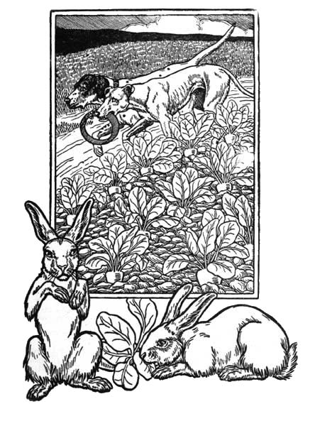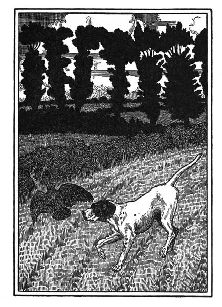 A gentleman in the county of Stirling kept a greyhound and a pointer, and being fond of coursing, the pointer was accustomed to find the hares, and the greyhound to catch them. When the season was over, it was found that the dogs were in the habit of going out by themselves, and killing hares for their own amusement. To prevent this, a large iron ring was fastened to the pointer's neck by a leather collar, and allowed to hang down so as to prevent the dog from running or jumping over ditches and dykes. The animals, however, continued to stroll out into the fields together; and one day the gentleman, suspecting that they were up to some sort of mischief, decided to watch them. To his surprise, he found that the moment when they thought no one was looking at them, the greyhound took up the iron ring in his mouth, and carrying it, they set off to the hills, and began to search for hares as usual. They were followed, and it was discovered that whenever the pointer scented the hare, the ring was dropped, and the greyhound stood ready to pounce upon the poor little creature the moment the other drove her from her form, but that he always came back to help his friend after he had caught his prey.[Pg 99]