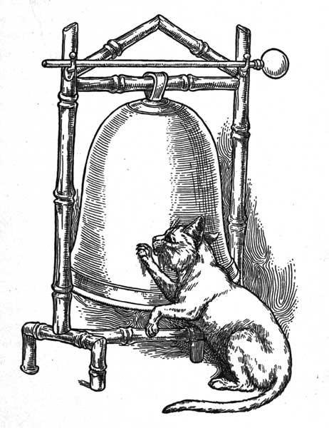 It is customary in large boarding-houses to announce the dinner-hour by sounding a bell. A cat belonging to one of these houses always hastened to the hall on hearing the bell, to get its usual meal; but it happened one day that she was shut up at dinner time in a chamber, and it was in vain for her that the bell had rung. Some hours afterward, having been released from her confinement, she hastened to the hall, but found nothing left for her. The clever cat then went to the bell, and ringing it, tried to call the family to a second dinner, in which she hoped to get her usual share.[Pg 119]