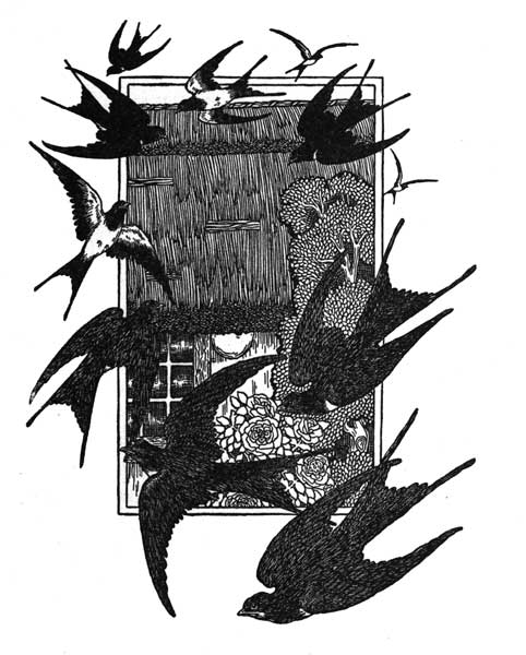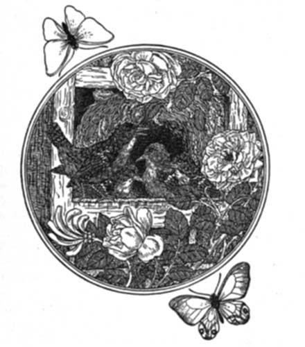Some years ago a sparrow had early in the spring taken possession of a swallow's old nest, and had laid some eggs in it, when the original builder and owner made her appearance and claimed possession. The sparrow, firmly seated, refused to leave the nest. A smart battle followed, in which the swallow was joined by its mate, and, during the conflict, by several of their comrades. All the efforts of the swallows to drive out the usurper were, however, unsuccessful. Finding themselves completely foiled in this object, they held a council of war to consult as to what they should do, and the plan they agreed upon shows that it was with no ordinary degree of ingenuity that they had solved the question as to what was right and just. Since the sparrow could not be driven out of the nest, the next question with them appears to have been, how she could be otherwise punished for her unlawful occupation of a property belonging to another. The council were of one mind in thinking that nothing short of the death of the intruder could atone for so heinous an offense; and having so decided, they went to work to put their sentence into execution in the following very wonderful manner. Leaving the scene of the contest for a time, they returned with many more friends, each bearing a beak full of building materials; and without any further attempt to beat out the sparrow, they at once set to work to build up the entrance into the[Pg 129] nest, and soon had enclosed the sparrow within the clay tenement, thus leaving the poor bird to perish in the stronghold she had so bravely defended.[Pg 130]