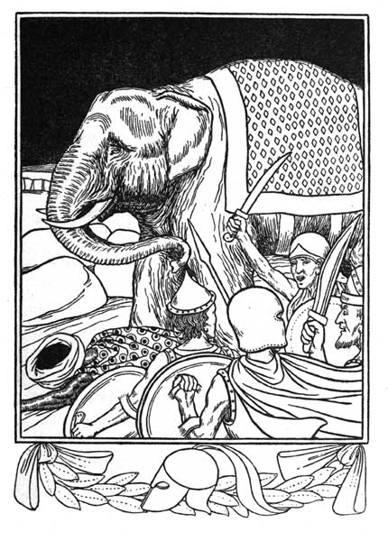The troops of Porus came by this time to his relief, and the king was saved; but the elephant died of the wounds which it had so bravely received in the heroic defense of its master.[Pg 171]