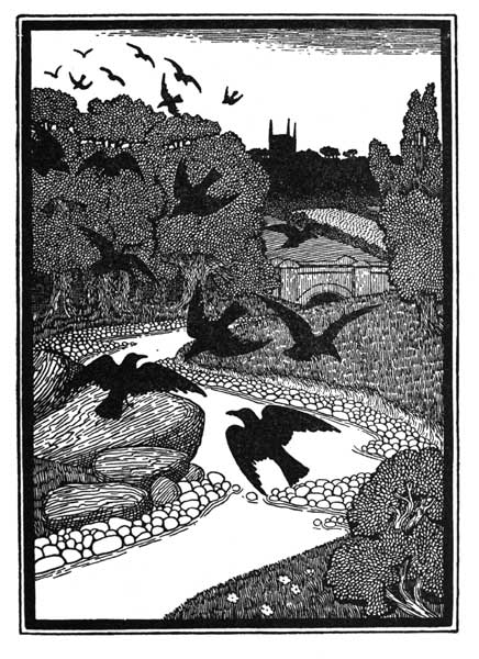 A large colony of rooks had lived for many years in a grove on the banks of a river. One quiet evening the idle birds amused themselves with chasing one another through endless mazes, and in their flight they made the air sound with many discordant noises. In the midst of this play, it unfortunately happened that one of the rooks, by a sudden turn, struck his head against the wing of another. The wounded bird instantly fell into the river. A general cry of distress followed. The birds hovered with every expression of anxiety over their distressed companion.