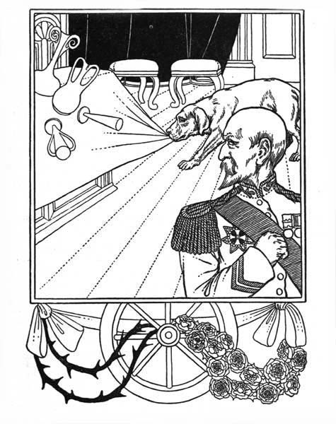 He passed them lost in thought, till, casting his eyes on a most beautiful sideboard, where a valuable collection of Venetian glass, polished and formed in the highest degree of perfection, stood on a damask cloth as a preparation for a splendid entertainment, he took hold of a corner of the linen, and turning to a faithful mastiff which always went with him, said to the animal, “Here, my poor old friend, you see how these haughty tyrants indulge themselves, and yet how we are treated!” The poor dog looked his master in the face, and gave tokens that he understood him. The master walked on, but the mastiff slackened his pace, and laying hold of the damask cloth with his teeth, gave one hearty pull, and thus[Pg 181] brought all the glass on the sideboard in shivers to the ground, thus robbing the unkind nobleman of his favorite exhibition of splendor.