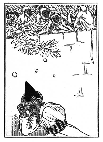 The town of Bindrabund in India is in high regard with the pious Hindoos, who resort to it from the most remote parts of the empire. The town is surrounded by groves of trees, which are the homes of numberless apes, whose fondness for mischief is increased by the religious respect paid to them in honor of a divinity of the Hindoo mythology, who is represented as having the body of an ape. Because of this superstition, such numbers of these animals are supported by the free-will offerings of pilgrims, that no one dares to resist or ill-treat them. Hence, access to the town is often difficult; for should one of the apes take a dislike to any unlucky traveller, he is sure to be assailed by the whole community, who follow him with all the missile weapons they can collect, such as pieces of bamboo, stones, and dirt, making at the same time a most hideous howling. Of the danger attending a meeting with enemies of this description, the following is a melancholy instance. Two young cavalry officers, belonging to the Bengal army, having occasion to pass through the town, were attacked by a body of apes, at whom one of the gentlemen had foolishly fired. The alarm instantly drew the whole body, with the fakeers, out of the place, with so much fury that the officers, though they[Pg 187] were mounted upon elephants, were compelled to seek safety in flight; and in trying to pass the Jumna, they both of them were drowned.