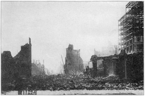 | Flames Spread in a Hundred Directions and the Fire Becomes the Greatest Conflagration of Modern Times—Entire Business Section and Fairest Part of Residence District Wiped Off the Map—Palaces of Millionaires Vanish in Flames or are Blown Up by Dynamite—The Worst Day of the Catastrophe | 46 |