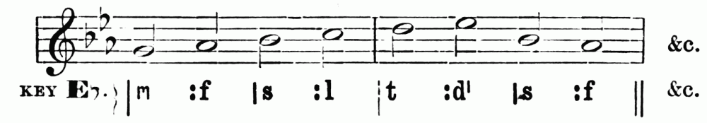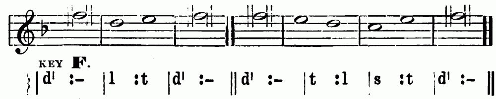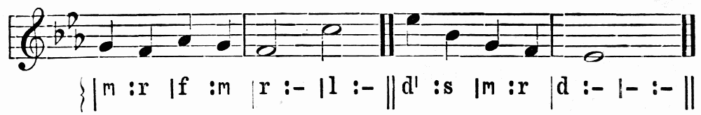 There is no doubt that the long services in many churches are trying to the choir boys. In some churches the morning service lasts two hours and a quarter. It is very hard even for an adult to keep his thoughts from wandering, and his eyes from{9} glancing over the congregation during all this time. How much more hard is it, then, for a boy who is by nature a fidget, and if healthy, brimming over with activity? Nevertheless boys can be trained, if not to control their thoughts, at least to an outward reverence and quietude in harmony with the service. Reproof, if it is needed, is best administered in private. Boys should be paid, if only a small sum; this gives the choirmaster a hold upon them, and enables him to impose fines, if necessary. Payment can be increased for those who take Tonic Sol-fa or other sight-singing certificates, which of course increase their value as choristers. Let it be noted that the voices will carry further if the boys hold up their heads. This caution is especially needed when they are singing in the kneeling posture.