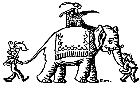 "Well, Jeppo was terribly woeful and that word zithern was bothering him. There was pithern and dithern and mithern. He had tried them all, but none of them seemed to mean anything. So he looked at King Muffin, who sat very straight on his horse, for he wasn't at all afraid of him, although he was a tall horse and had nostrils that got bigger and littler all the time; and back legs that twitched. Meanwhile King Muffin twirled a gold chain in his fingers. Then Jeppo looked at King Muffin's clothes and saw that they were fashionable. Then he looked at his hat and there was a yellow feather in it. And those kywatskies. King Muffin, just to tease him, twirled his moustache, as kings will.