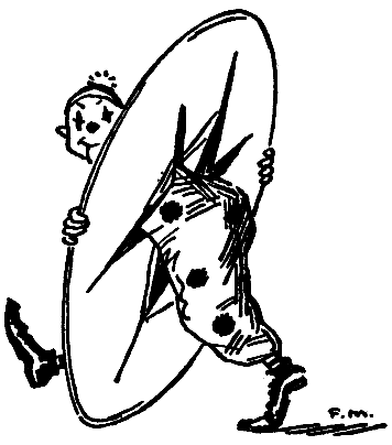 A room's use changes with the clock. That girl who lives opposite, when she is dressed in the morning, puts a Bagdad stripe across her couch. She punches a row of colored pillows against the wall. Her bedroom is now ready for callers. It was only the other day that I read of a new invention by which a single room becomes four rooms simply by pressing a button. This is the manner of the magic. In a corner, let us say, of a rectangular room there is set into the floor a turntable ten feet across. On this are built four compartments, shaped like pieces of pie. In one of these is placed a bath-tub and stand, in another a folding-bed and wardrobe, in a third is a kitchen range and cupboard, and in the fourth a bookcase and piano. Must I explain the mystery? On rising you fold away your bed and spin the circle for your tub. And then in turn your stove appears. At last, when you have whirled your dishes to retirement, the piano comes in sight. It is as easy as spinning the caster for the oil and vinegar. A whirling Susan on the supper table is not more nimble. With this device it is estimated that the population of our snug island can be quadruplicated, and that landlords can double their rents with untroubled conscience. Or, by swinging a fifth piece of pie out of the window, a sleeping-porch could be added. When the morning alarm goes off you have only to spin the disk and dress in comfort beside the radiator. Or you could—but possibilities are countless.