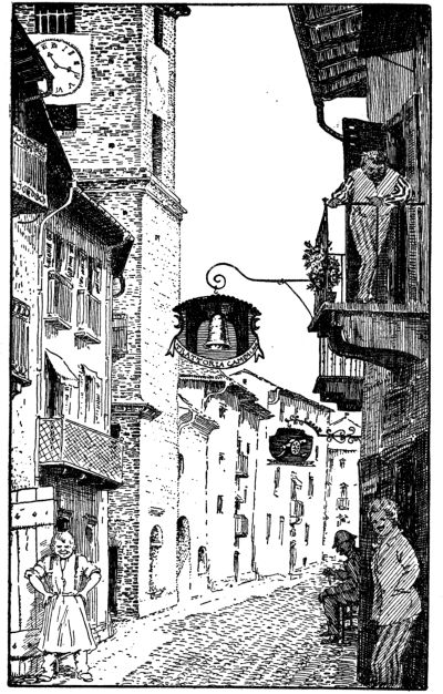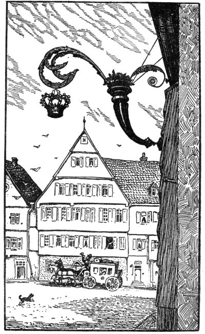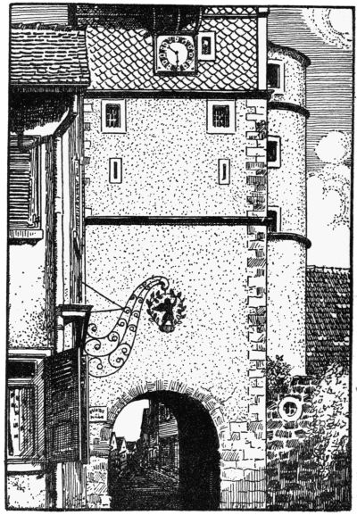 Over the lintel of the door of the tavern the sculptured angel shone resplendent in his golden glory. A charming little balcony rested on his wings and his hands held out a crown of hospitable welcome to royal and common guests alike. All these winged messengers of hospitality seem to say in the words of the Old Testament: “The stranger that dwelleth with you shall be unto you as one born among you, and thou shalt love him as thyself: for ye were strangers in the land of Egypt.”