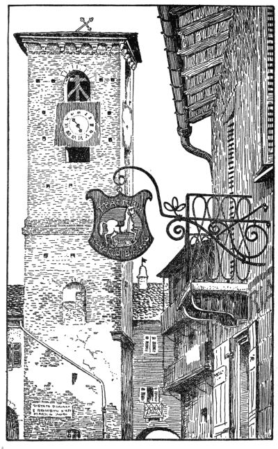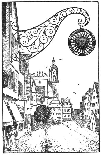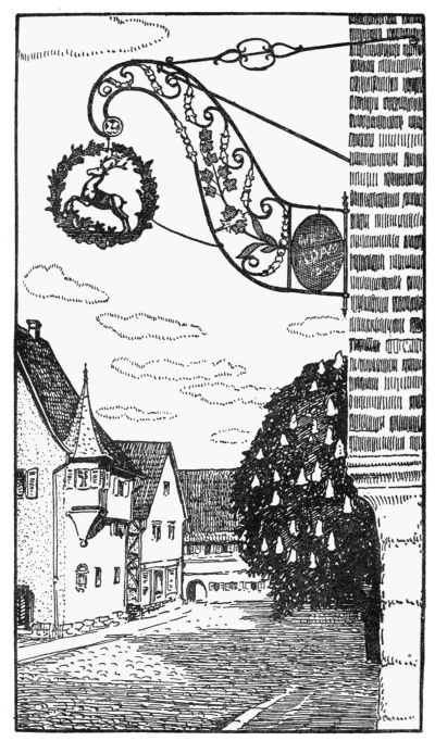 But we must not end without delivering a little sermon to the signs, too, that still glitter in the warm sunshine. To them, cocks, deer, bears, oxen, and horses, a church-tower cock, celebrated by the humorous clergyman poet Möricke of Schwabenland, gives this solemn warning:—