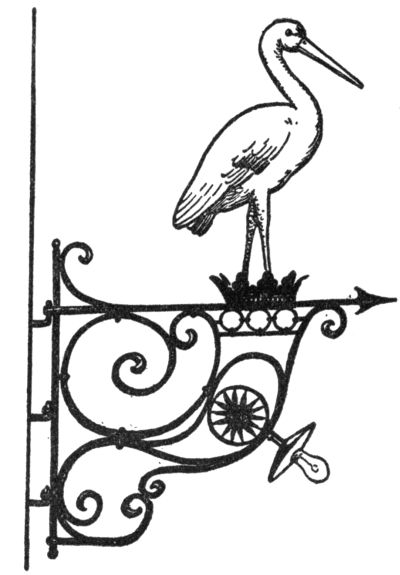 So the sign was in many ways a useful institution topographically, politically, and morally. Its merits are not yet exhausted: it was a good weather prophet, too. When the old iron things began to moan and to squeak, storm and rain surely were not far, as an English rhyme whimsically says:—