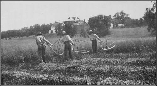 There was no such thing known, except in dreams, as the use of machinery in the cultivation of the soil. The average farmer, in all civilized countries, believed that an iron plow would poison the soil. He planted his grain by the phases of the moon; kept his cows outside in winter; and was unaware that glanders was contagious. Joseph Jenks, of Lynn, had invented the scythe in 1655, "for the more speedy cutting of grasse"; and a Scotchman had improved it into the grain cradle. But the greater part of the grain in all countries was, a century ago, being cut by the same little hand sickle that the Egyptians had used on the banks of the Nile and the Babylonians in the valley of the Euphrates.