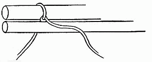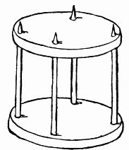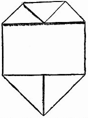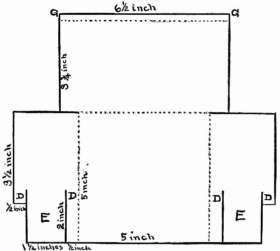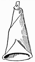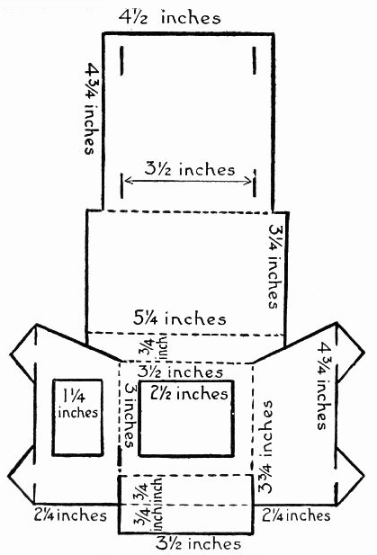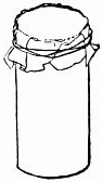 The best way to carry salt, pepper, etc., is to put each into a small paper box, the salt in one of cylindrical form, the lid of which has previously been punched full of holes with the aid of a tack or a slender wire nail (Fig. 565). The pepper can be in a smaller and differently shaped box, and sugar in a box of still another size and shape, that there may be no chance of mistaking one for the other and covering the meat with sugar or trying to sweeten the lemonade with salt. The perforations in the lid of the pepper-box must be quite small; punch them with a large-sized needle. After the boxes are filled the lids can be fastened securely with strong paste and, before they are packed, may have paper tied down over the tops (Fig. 566), to preclude all chance of the contents sprinkling out during the journey.