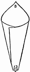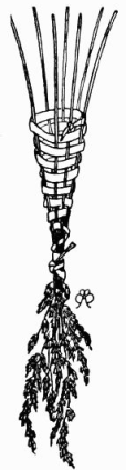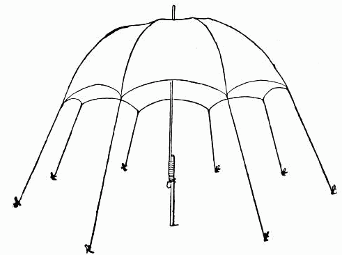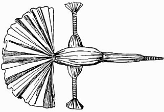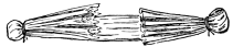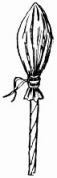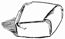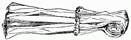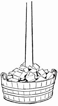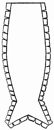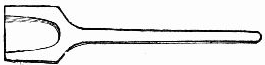 As far as possible have the table equipment of paper, that it may not be necessary to carry it back home. A tablecloth composed of large sheets of smooth white wrapping-paper will answer the purpose very well. Paper plates such as are used by bakers, make excellent substitutes for china ones and are the very thing for outing parties. Spoons may be home-made, whittled of wood; should the bowls of the spoons prove too difficult to manage, make them like small shovels (Fig. 567). If time will not allow of this, flat, smooth sticks larger at one end than the other (Fig. 568) may take their place. Knives are not absolutely necessary. Only one need be taken, but that must be of good size and sharp, to be used for cutting[342] bread. It is a mistake to carry fine table linen or silver, they always prove a great care and are apt to be injured or lost, but not being skilled in the art of eating with chopsticks, like the Chinese, you will have to be supplied with forks. Take barely enough for the purpose and have them of the most inexpensive quality; then it will not matter if one or two happen to be lost. Only a few cups will be required and no saucers; the company can take turns using the cups. One item more—a pail for the water.