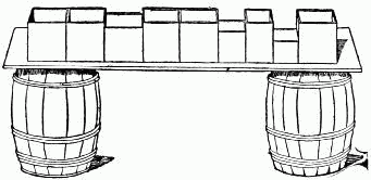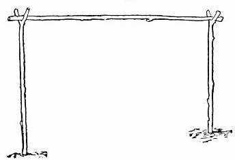 If the players are of unequal weight, the heavier one shortens his half of the plank by shoving it along farther across the fence or log, preserving in this way the equilibrium. To start the "Teeter-tarter" one of the players should give a slight spring upward with the feet while retaining his sitting posture on the board.