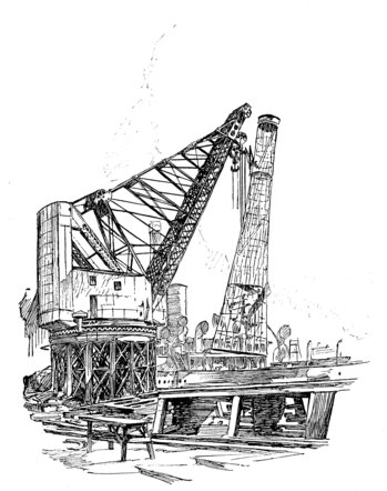 Nothing can be more amusing or reveal more clearly what brains and energy have been able to accomplish in the arena of American opportunity than to contrast the picture of the first Roebling factory in Trenton, which suggests the rudest of farmsteads, with the sky-piercing chimneys and the mile or more of many-windowed brick buildings in and around the Jersey capital today, where the Roebling work is done.