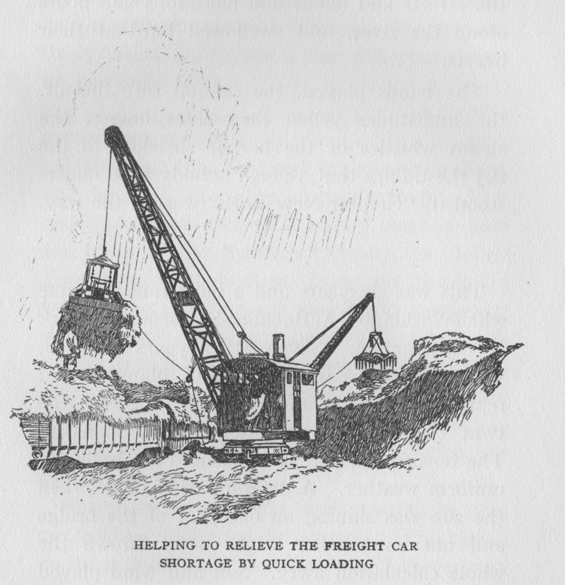 The cars that carry these heavy cables were made specially for the purpose. An ordinary car would crumble under the load, but the machine and the cars are still in use, and busy.
