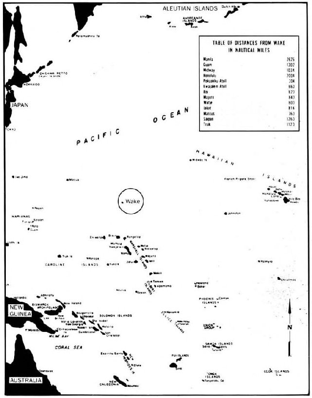 It is Monday, 8 December 1941. On Wake Island, a tiny sprung paper-clip in the Pacific between Hawaii and Guam, Marines of the 1st Defense Battalion are starting another day of the backbreaking war preparations that have gone on for weeks. Out in the triangular lagoon formed by the islets of Peale, Wake, and Wilkes, the huge silver Pan American Airways Philippine Clipper flying boat roars off the water bound for Guam. The trans-Pacific flight will not be completed.