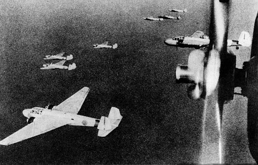 Guns 1 and 2 of Battery D opened up on the attackers, collectively firing 40 rounds during the raid. The low visibility and the altitude at which the Mitsubishis flew, however, prevented the 3-inch guns from firing effectively. No bombs fell near the battery, but the guns’ own concussions caved in the sandbag emplacements, Marine antiaircraft fire damaged eight Nells and killed a petty officer in one of them. Returning Japanese aircrews claimed to have set fire to all of the aircraft on the ground, and reported sighting only three airborne American planes.