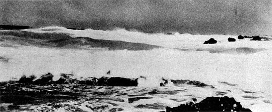 There, unable to see at what his neophyte sailor-gunners were expending their ammunition, Poindexter asked each to point out his target. Two could not—they’d opened fire only because the other two had done so—but a third pointed to the dim outline of what appeared to be a “large landing barge on the order of a self-propelled artillery lighter.” When another craft of the same type seemed to materialize out of the murk, Poindexter ordered firing resumed at what proved to be two large landing craft that were attempting to ground themselves 1,200 yards east of the entrance to Wilkes Channel.