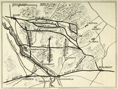 In the light of my observations during the battle,[vii] I went over the fields after the armistice, and studied the official reports, and talked with the men of our army divisions. For reasons that are now obvious, the results do not read like the communiqués and dispatches of the time, which gave our public their idea of an action which could not be adequately described until it was finished and the war was over. We had repulses, when heroism could not persist against annihilation by cross-fire; our men attacked again and again before positions were won; sometimes they fought harder to gain a little knoll or patch of woods than to gain a mile's depth on other occasions. Accomplishment must be judged by the character of the ground and of the resistance.