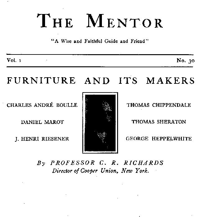 Title: The Mentor: Furniture and its Makers, Vol. 1, Num. 30, Serial No. 30