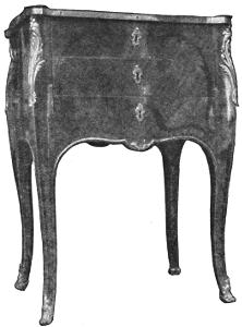 The rococo (from rocaille, rock, and coquille, shell) ran its extravagant course with increasing exaggeration and license during the first half of the reign of Louis XV; but it should not be thought of as affecting all the furniture even of this period, for its manifestations were mainly in the field of the carver and bronze worker, and the outlines of furniture were very little influenced, except in the case of the smaller and lighter pieces, such as console tables. About the middle of the reign the limit of artistic license had been passed and a reaction set in. The ormolu, which had reached excessive size and had become overloaded on the surface, was withdrawn to the edges, and made smaller and more suitable for the delicate proportions of the pieces. In its place marquetry of beautiful colored woods, more or less practised for over a century, was brought to a perfection never before equaled.