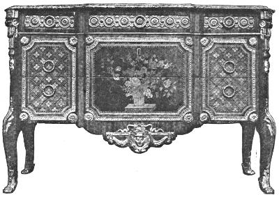 Marot’s work differs from that of Boulle in that he inserted, in medallion form, pictorial subjects in a heavy framework of ornament. In other pieces the inlay took the form of geometrical, floral, and animal patterns, combined with the warmer and more beautiful tints of the exotic woods. The whole was marked by an unsurpassed degree of excellence in workmanship.