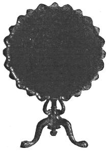 Besides his chairs, the name of Chippendale is closely associated with the charming tripod tables, generally made with tilted top and often with molded or “piecrust” border, with the flat card tables so much used in the gaming of the period, and with the all-china cabinets and bookcases with glass fronts, and oftentimes with a characteristic broken pediment at the top.
