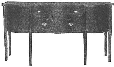 From the time of the Middle Ages the buffet has existed as an important article of furniture; but to Heppelwhite is due the credit of perfecting the sideboard in its present English form. He combined the pedestal cellaret and side table of Robert Adam in one structure, and effected a union of utility with elegance, which he executed in many pleasing designs of bow and serpentine front.