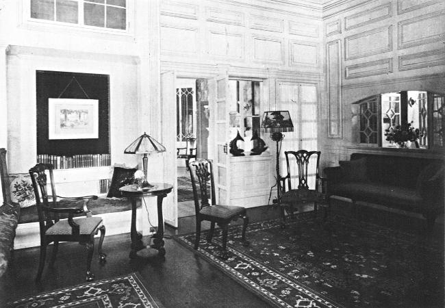 INTERIOR SHOWING THREE CHIPPENDALE CHAIRS