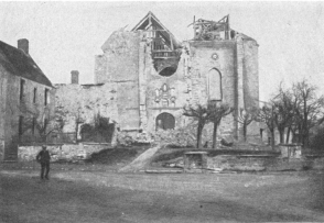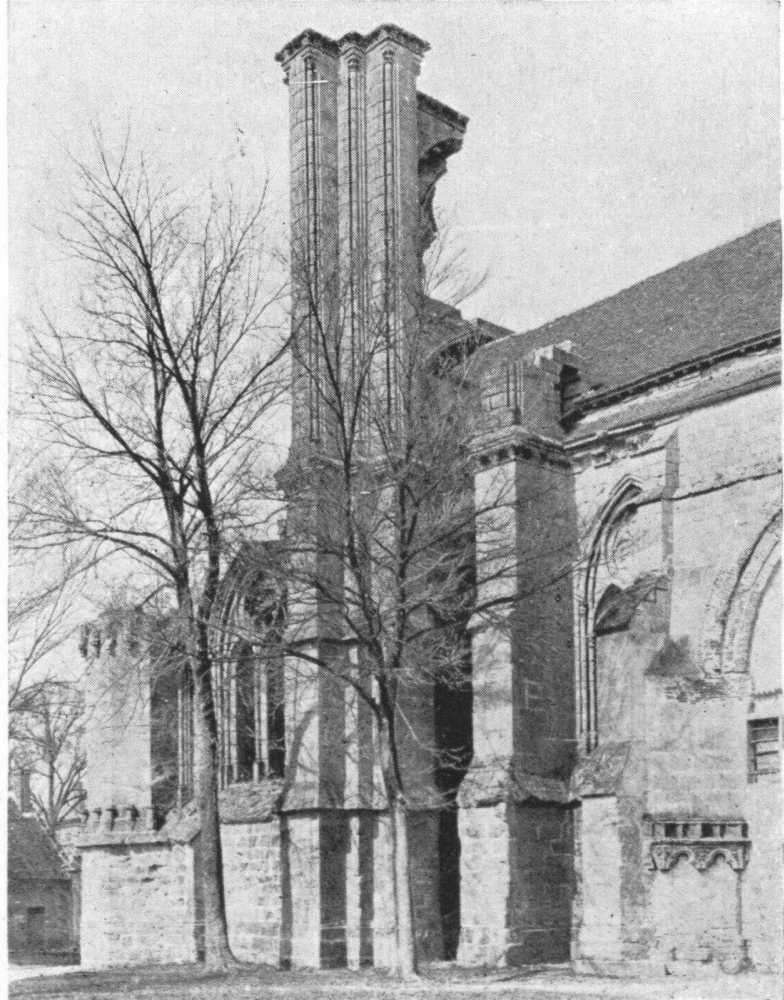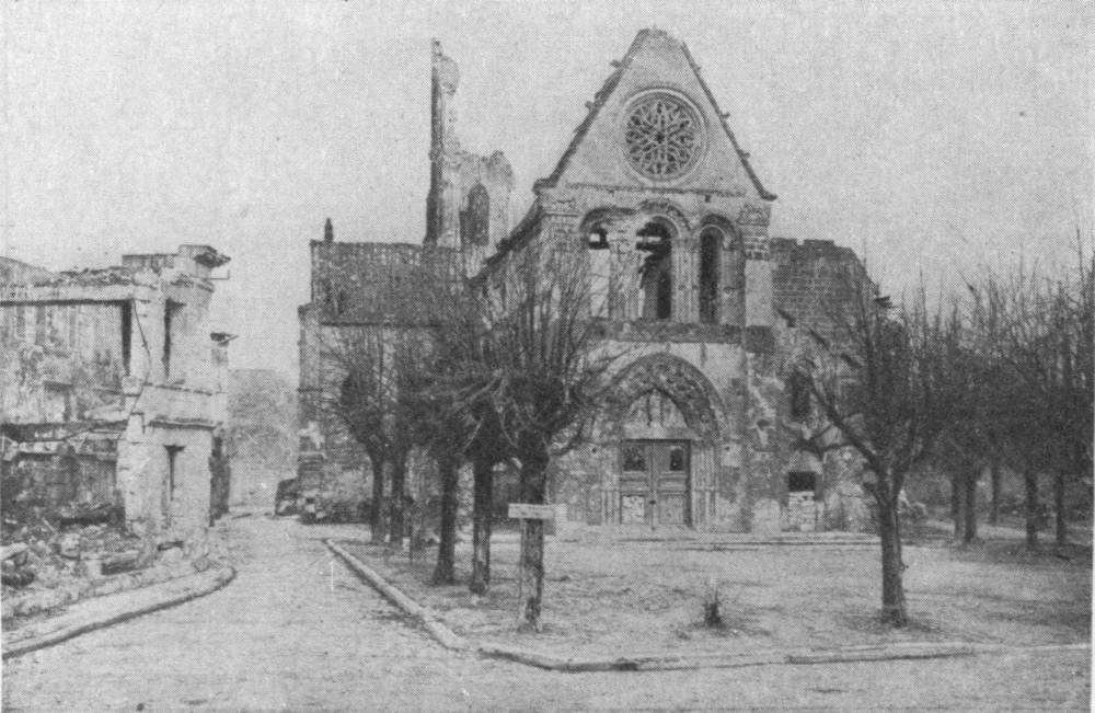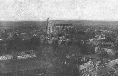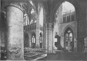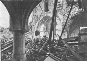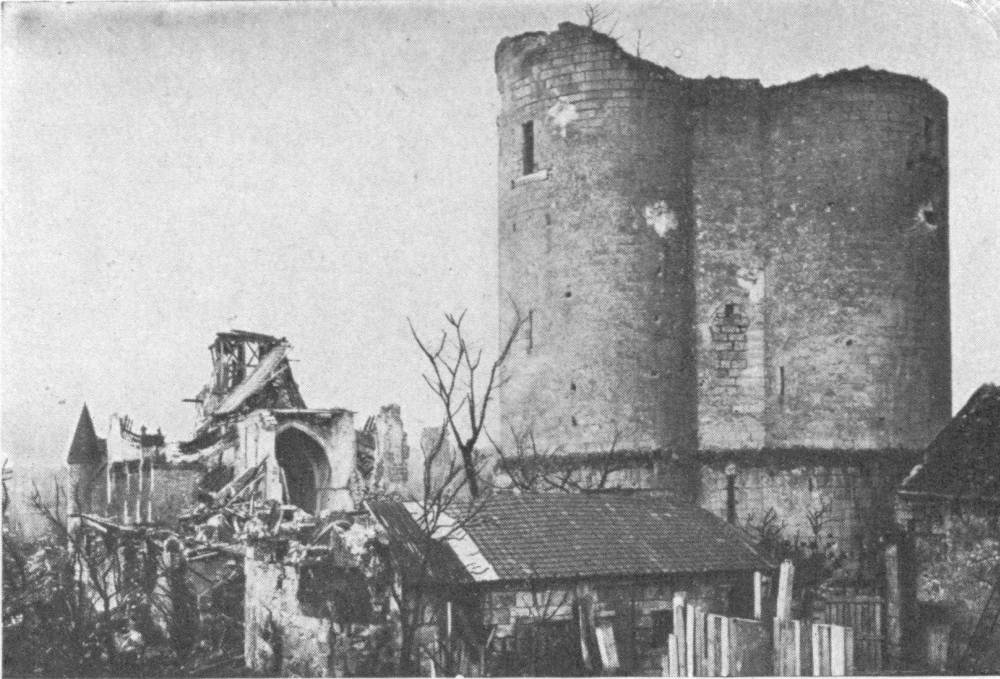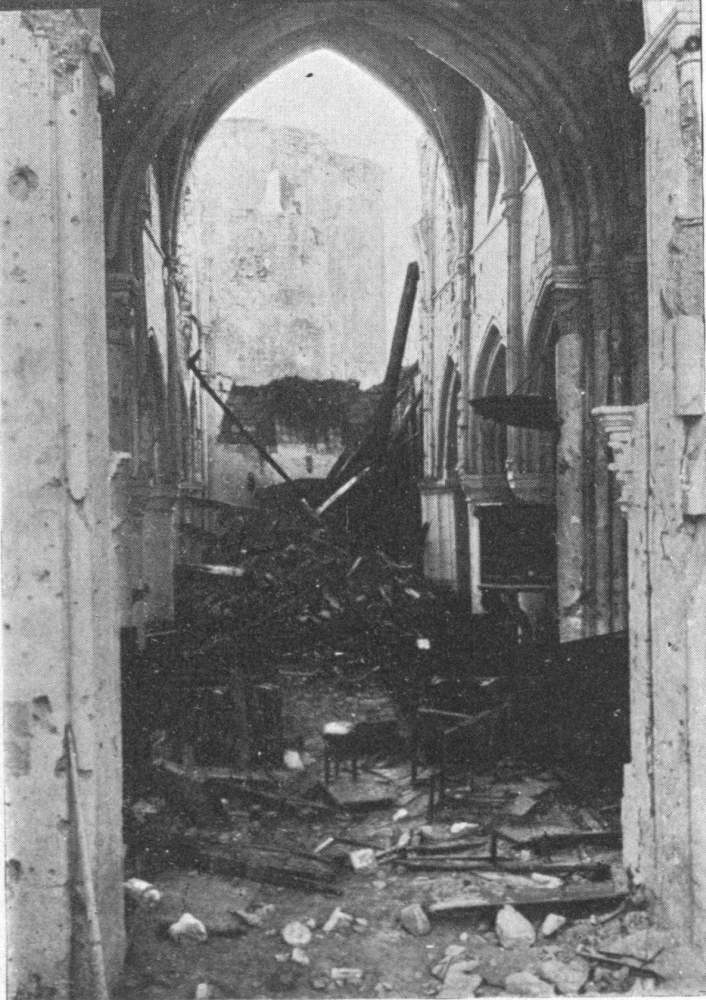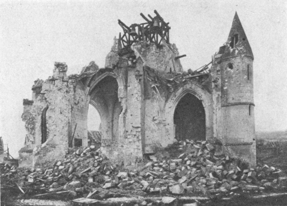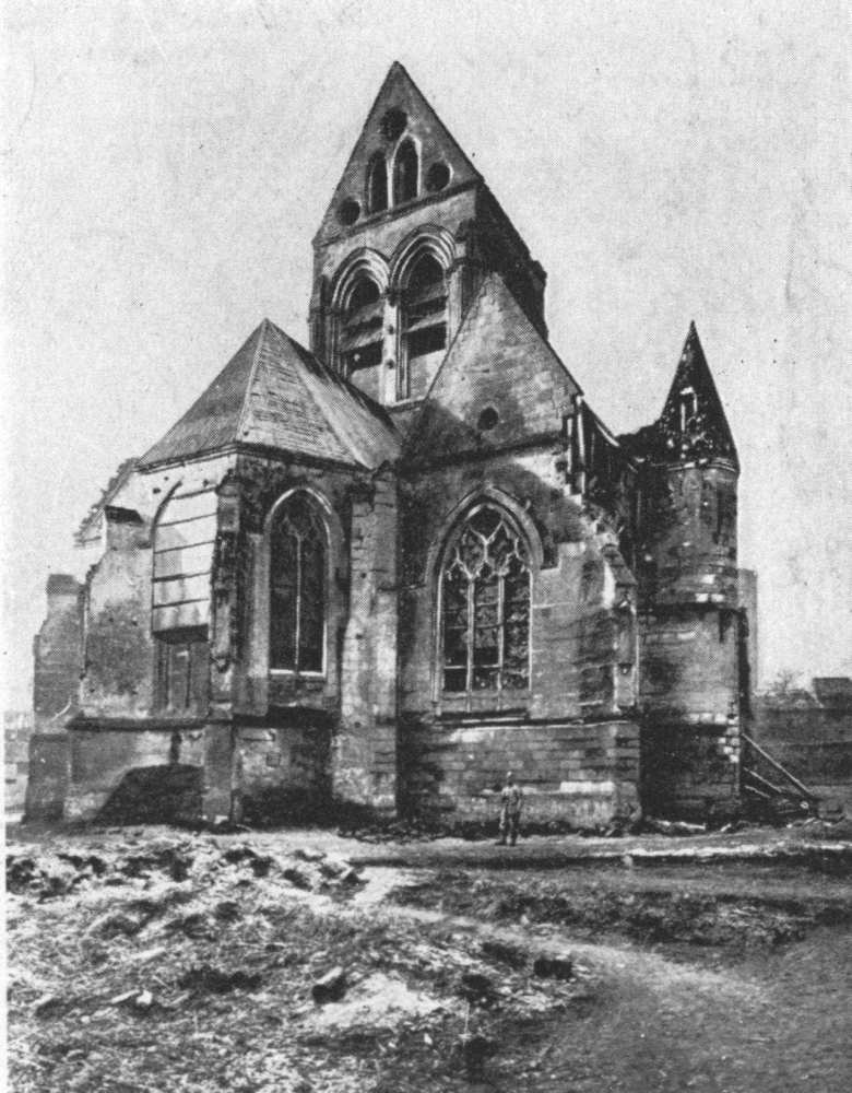 SOISSONS IN NOVEMBER, 1918. NOTE THE SEPARATION OF THE CATHEDRAL TOWER FROM THE NAVE.