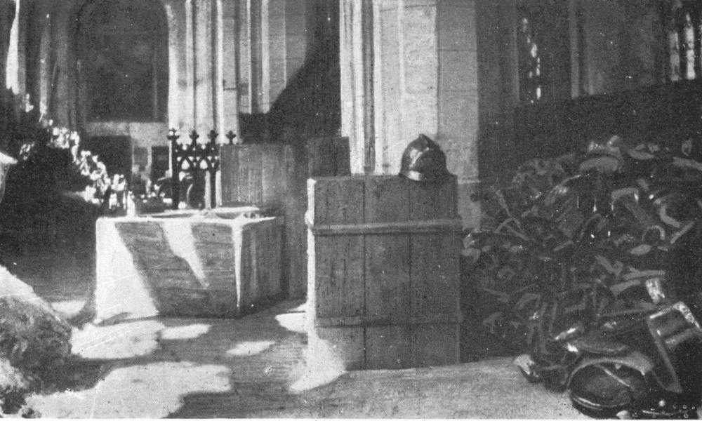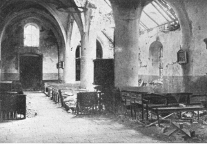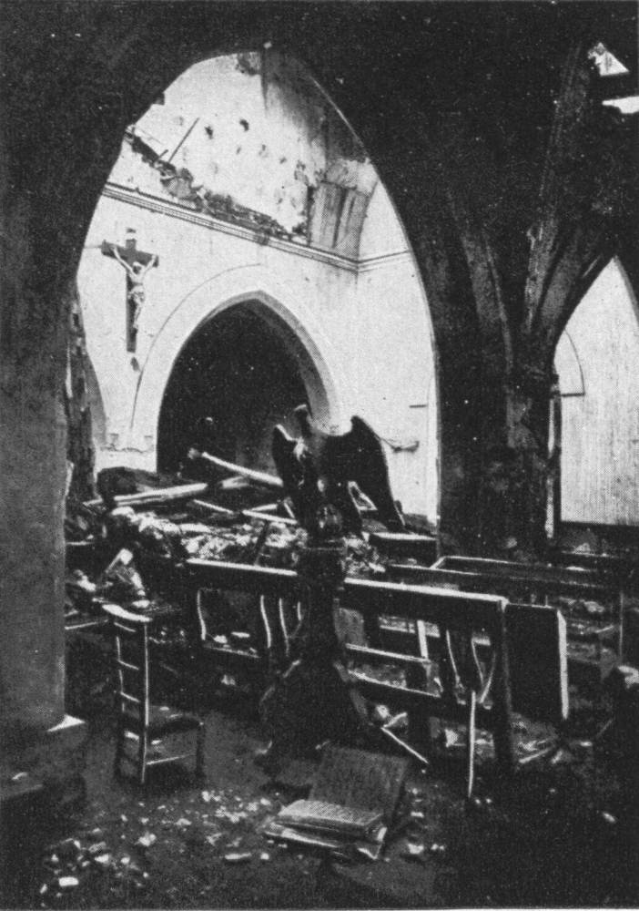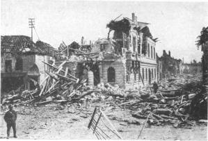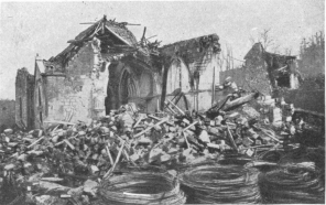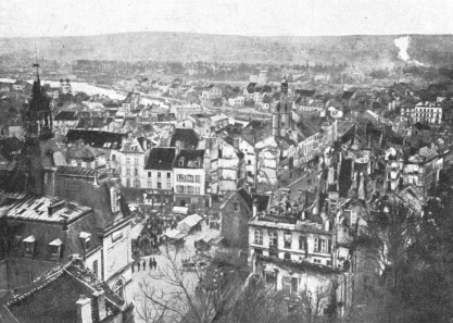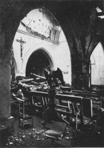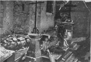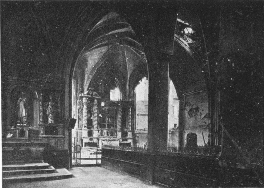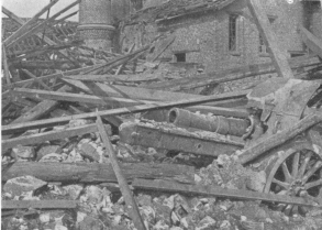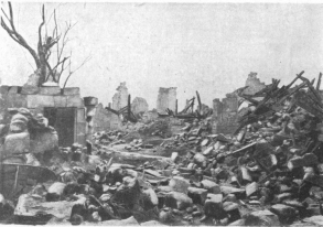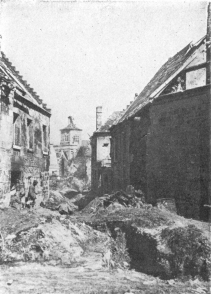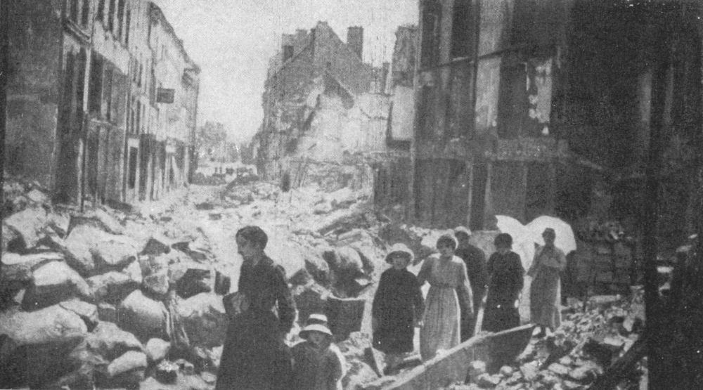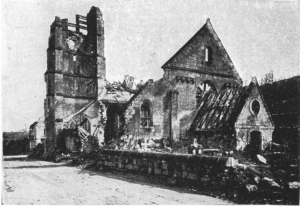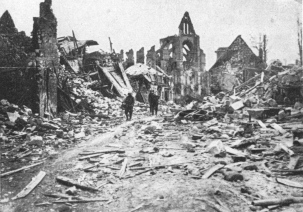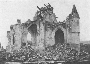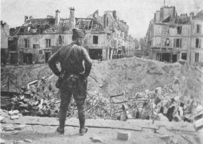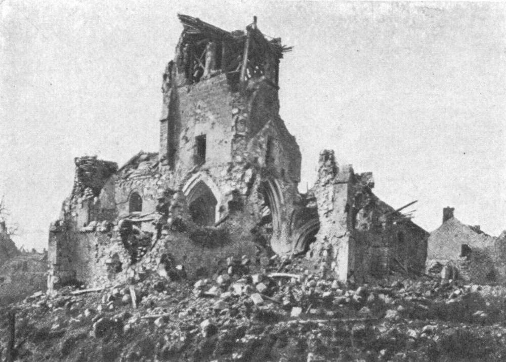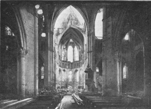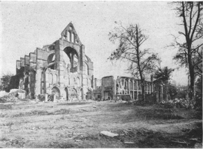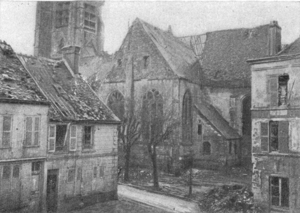 SOISSONS IN NOVEMBER, 1918. NOTE THE SEPARATION OF THE CATHEDRAL TOWER FROM THE NAVE.