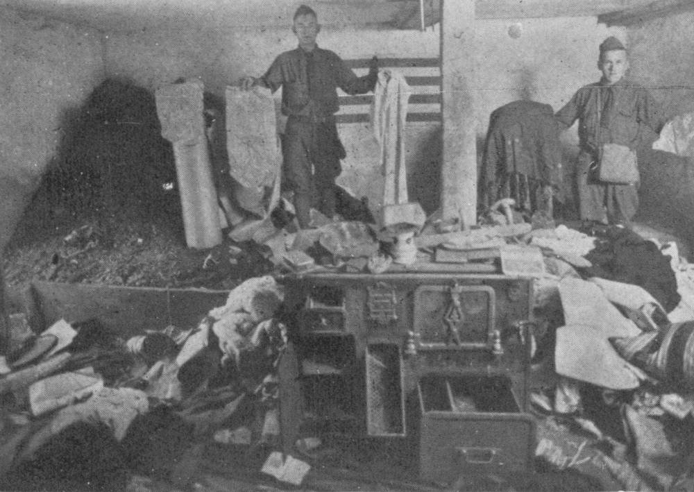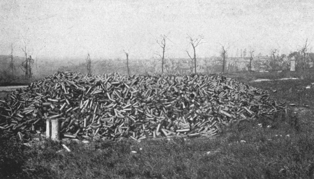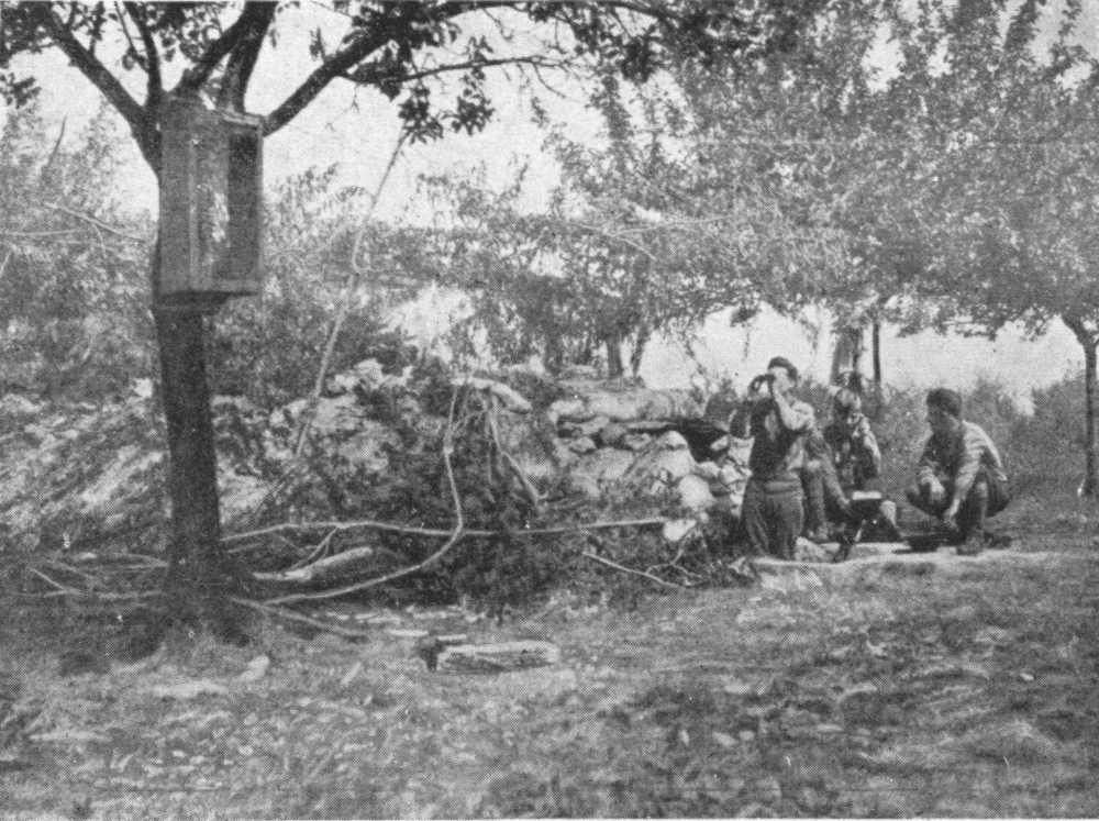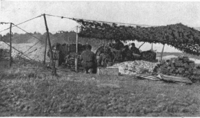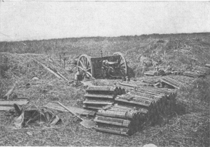 Each regiment was provided with numerous heavy and light machine-guns, mine-throwers, and accompanying guns. An idea of the huge numbers of the latter may be gained from the fact that sixty-eight batteries of four guns each were counted in two regiments.