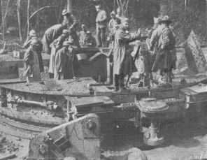 After a terrifically intense artillery preparation which began at midnight and included great quantities of gas-shells, the German infantry rushed forward between 3.30 and 4 a.m., preceded by a powerful creeping barrage and, in places, by tanks. The surprise was complete. The French stood the bombardment heroically and made a desperate resistance. Near Laffaux, the 21st (Territorial) Regiment fought to the last man rather than fall back. However, in spite of heroic resistance and heavy sacrifices, the German onrush bore down the Allies by sheer weight of numbers.{7}