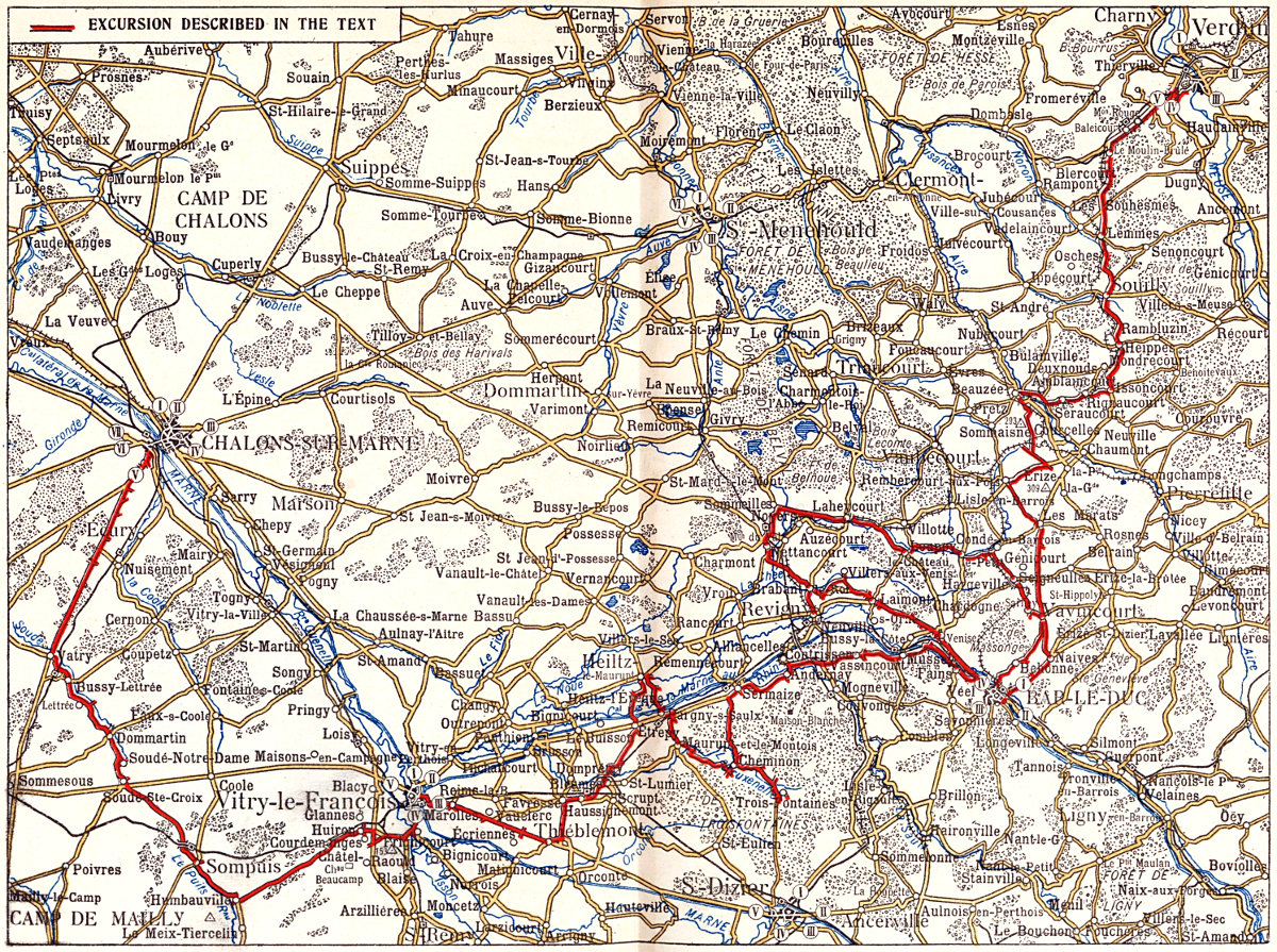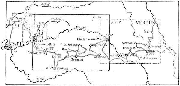IMPORTANT NOTE.—On pages 4 to 16 will be found a brief summarized account of the Battle of the Marne and of the events which immediately preceded it. We recommend the reading of these few pages attentively, and the consultation of the maps annexed to the same, before reading the descriptive part which commences at page 17.