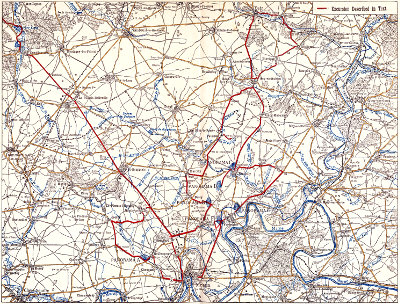 The distance from Paris to Verdun is 140 miles as the crow flies; from Charleroi to the Marne is 97 miles.