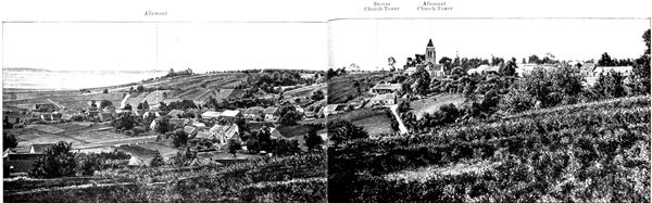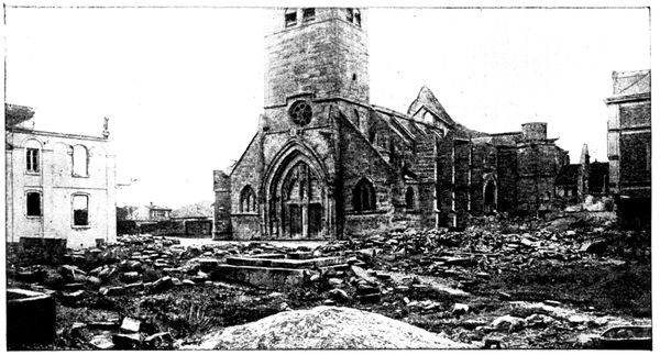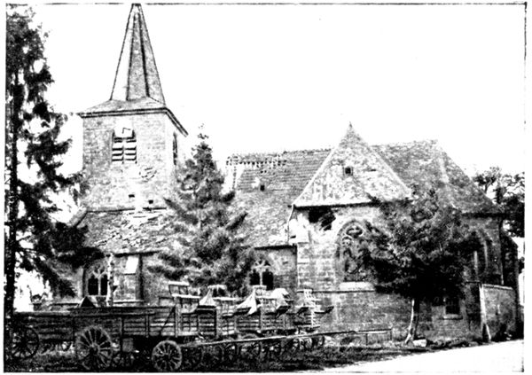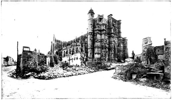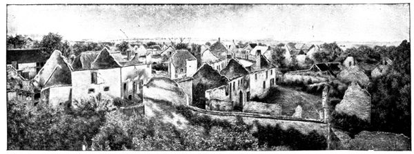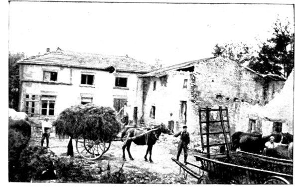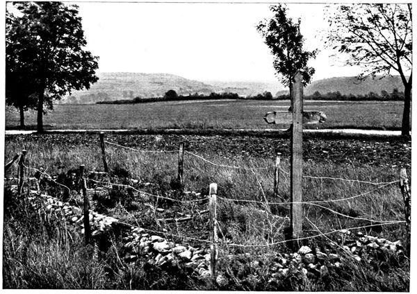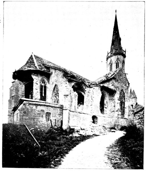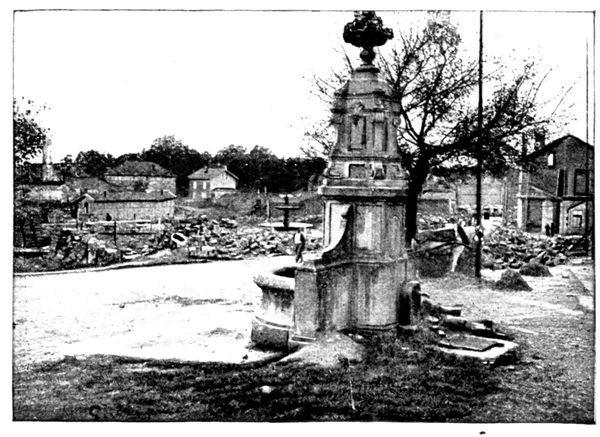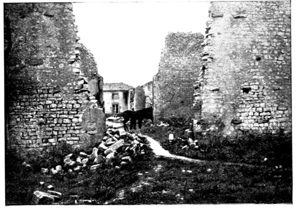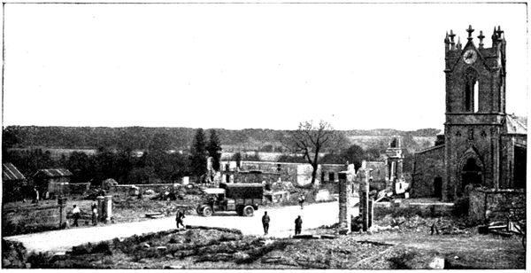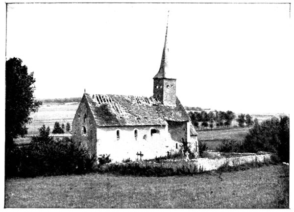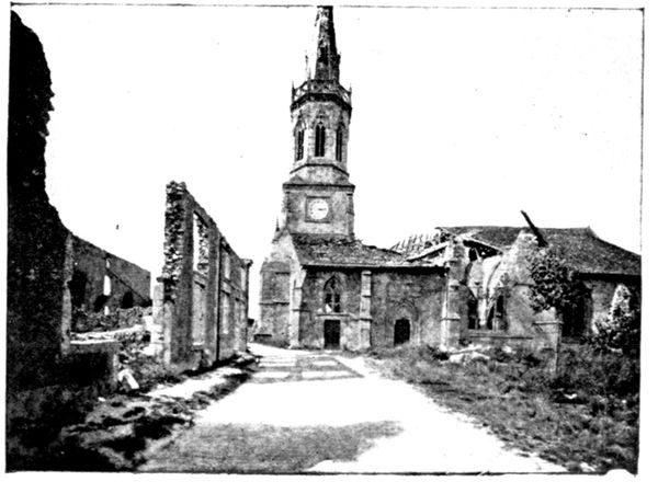 This little village was destroyed. The view in the centre of p. 260 shows what remains of the town-hall, which was formerly a church. In Amblaincourt, turn first to the right and then to the left, without crossing the railway. I. C. 26 going to Seraucourt follows the valley which appears on the panorama on p. 257. A tributary of the Aire and the little railway from Bar-le-Duc to Verdun follow the windings of this valley.