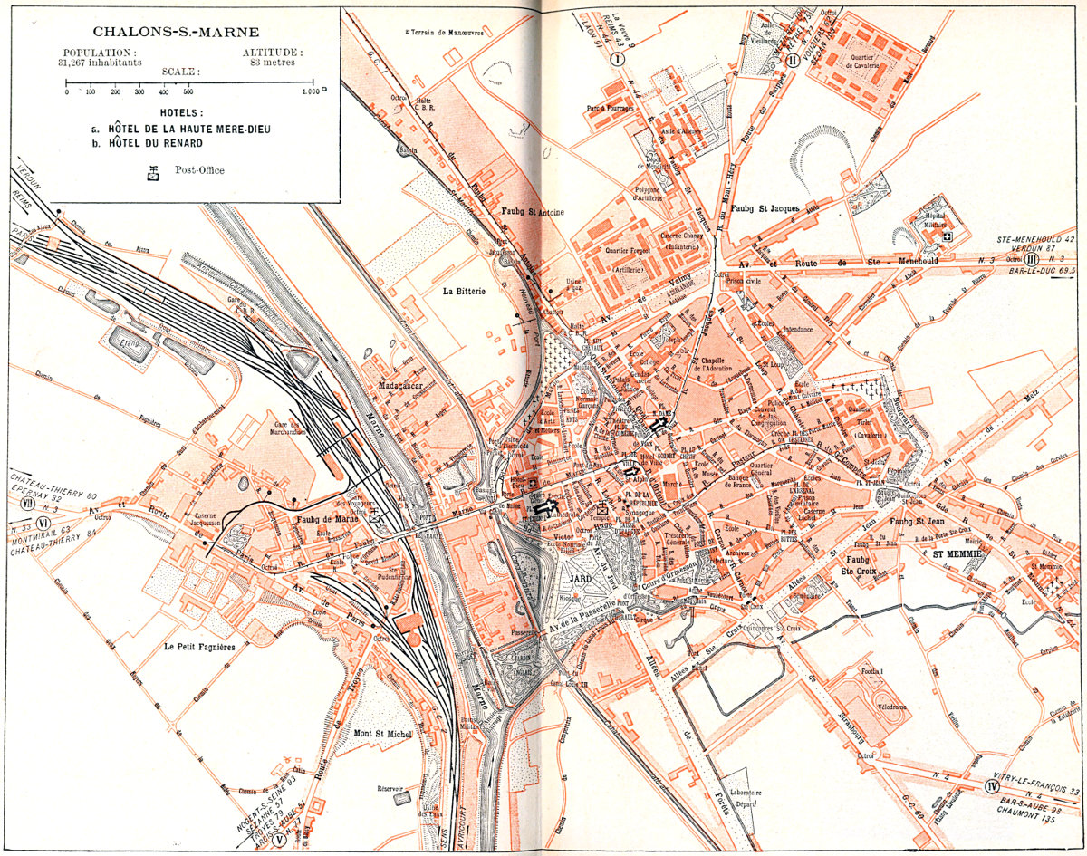 The above information, dating from January 1, 1919, may possibly be no longer exact when this falls under the reader's eyes. It would be more prudent, therefore, before making the tour described in this volume, to consult the latest French edition of the 'Guide Michelin.'