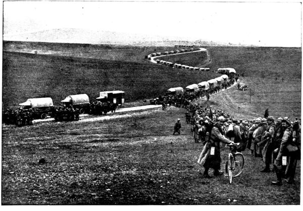 FLEET OF MOTOR-BUSES BRINGING TROOPS BACK FROM VERDUN