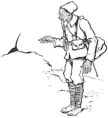 Ratu explorait le sol ravagé. Il retournait vers les tranchées d'où les Français s'étaient élancés. Souvent il s'arrêtait, respirant longuement une touffe d'herbe brûlée, ou le trou creusé par une explosion,—puis trottait vite pendant quelques instants, et s'arrêtait encore, hésitant... Parfois il humait longuement une place très dévastée, tâchant visiblement de démêler l'écheveau embrouillé des pistes laissées par les combattants.—On se gardait bien de le troubler. On l'observait de loin, silencieusement.
