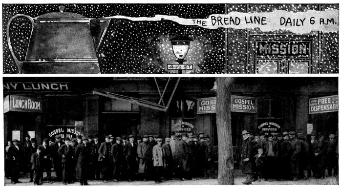 was really brought about by two tragedies. One cold day I went to the Mission, and on the outside I saw a man, whom I shall call Kelly, shivering at the door. He looked like death, pale, trembling, the lips and nostrils drawn as if in extreme pain. “What is the matter, Kelly?” I said. “I am starving to death; amid all these happy people I am left out. I have walked the streets hunting work till I can walk no more.”