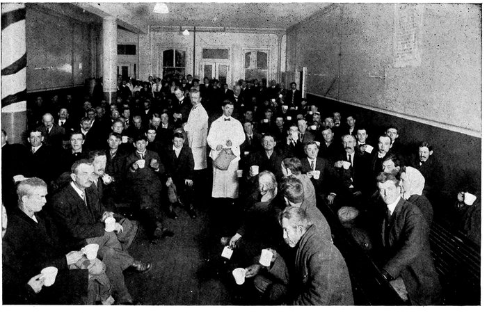 We have in Washington a club known as “The Monday Evening Club,” a clearing house for all forms of philanthropy. At the different banquets and at their monthly meetings all forms of reforms, from purely a humanitarian standpoint, are discussed, but we, who go at the open sores of the world with the only sure cure earth has yet received, the religion of Jesus Christ, we receive no recognition, we are given no hearing at banquets, and are never spoken of as part of the city's force for betterment, yet we comfort the prisoner, we bring hope to the hopeless, and we are the real protection of the city. No hungry man is turned from our door unsatisfied. A hungry man is a danger, a man with a hungry family is a menace. He will get food even if it costs a life to obtain it. Like Him whom we serve we are rejected 105of men. We work amid the social dynamite of a great city. Unless the religious part of this nation assumes its rightful place as arbiter in all labor troubles, saying to the rich man, “Thou shalt not defraud,” and to the poor man, “Thou shalt do no violence”; unless Christian people see to it that remunerative labor can be had by every person willing to work; unless Christian people close the saloons (the author of seventy-five per cent of the sufferings of the poor), on some sad day our great cities will be systematically dynamited. As Christians we must go down among them and make the broken man feel that he is only temporarily sidetracked from the great highway of success. That the grace of God and his own will can and will bring him back to the great highway of prosperity.